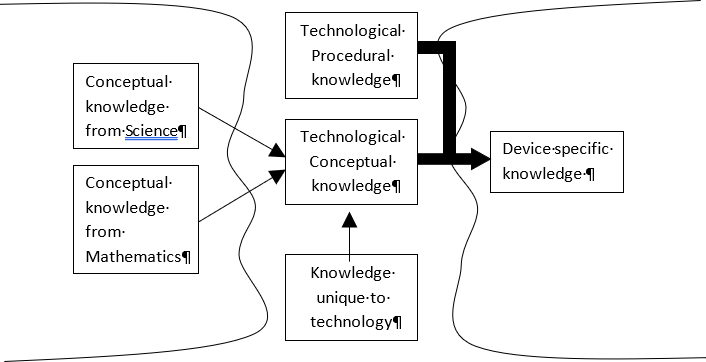 Teachers’ perceptions and concepts of technological knowledge also impact on subsequent classroom practices. It was found that educators do not naturally make connections but stay within a narrowly defined field of study. So for example, Science teachers discussed technology in terms of applied science, Social Studies teachers focused on the effect of technology on society, English teachers discussed technology as an information tool and Technical teachers’ view was focused on skills and the design and technical aspect of making of artefacts (Gradwell, 1999; Jones, 1997). The outcome of this scenario resulted in very heterogenous perspectives of what constitutes technological knowledge, with the consequence of advisory comments such as that by Layton (1991), which was to explore the relationship between teachers’ content knowledge and the pedagogical knowledge which they employ when they represent and formulate content in order to make it comprehensible to others.
