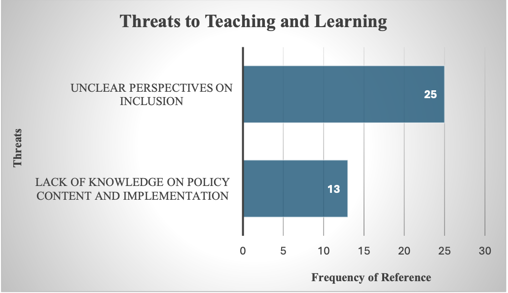Research in various contexts reveals that educators often lack a clear understanding of inclusion policies. For instance, Raudeliūnaitė and Steponėnienė (2020) noted that teachers’ views on inclusion are sometimes unclear. Van Tran et al. (2020) argue that this unclarity transpires due to the limited opportunities for educators to learn policy content (Van Tran et al., 2020). Silveira-Zaldivara and Curtis (2019) concluded that such unclear perceptions can hinder implementation, seeing educators very often maintaining the status quo. Fox et al. (2021) suggested that when teachers’ beliefs conflict with reform objectives, they serve as barriers to inclusive practice, putting the educational support for autistic learners at risk.